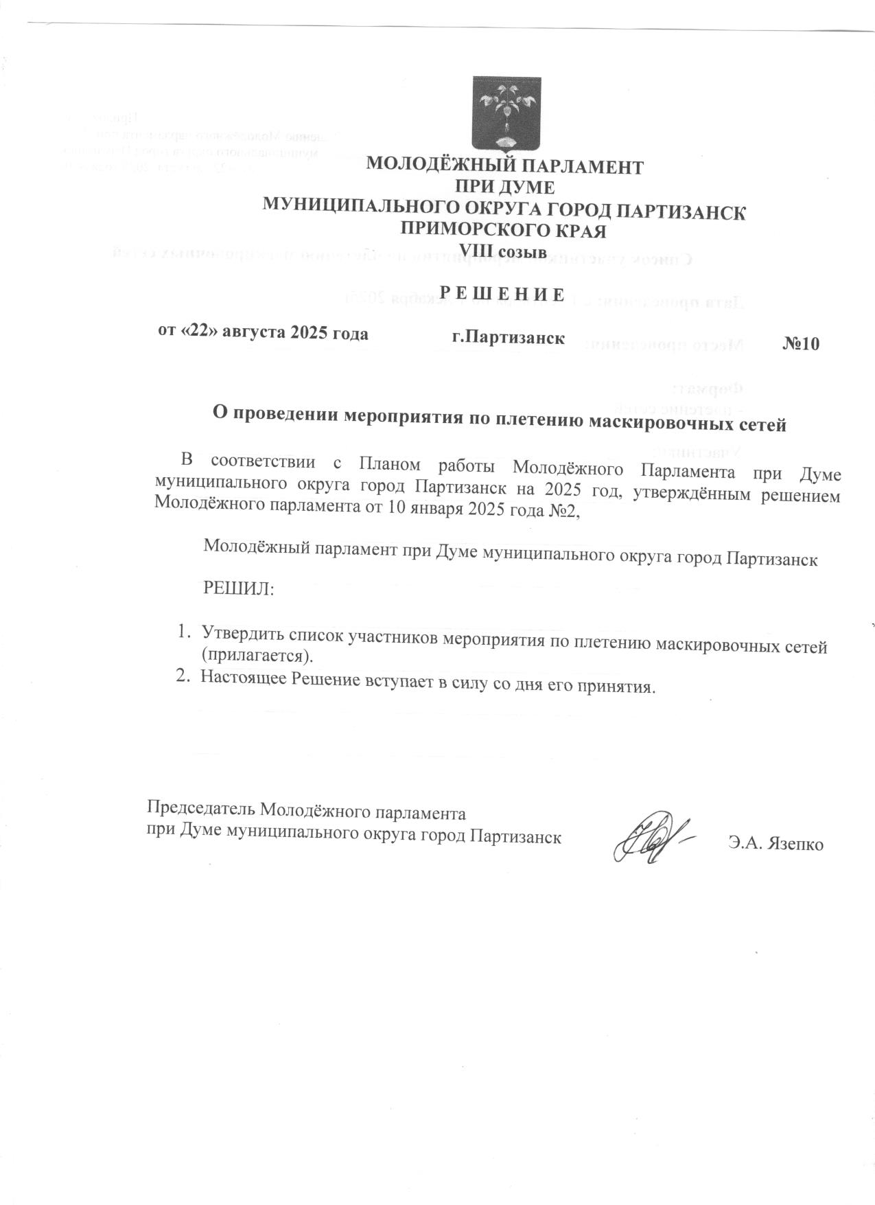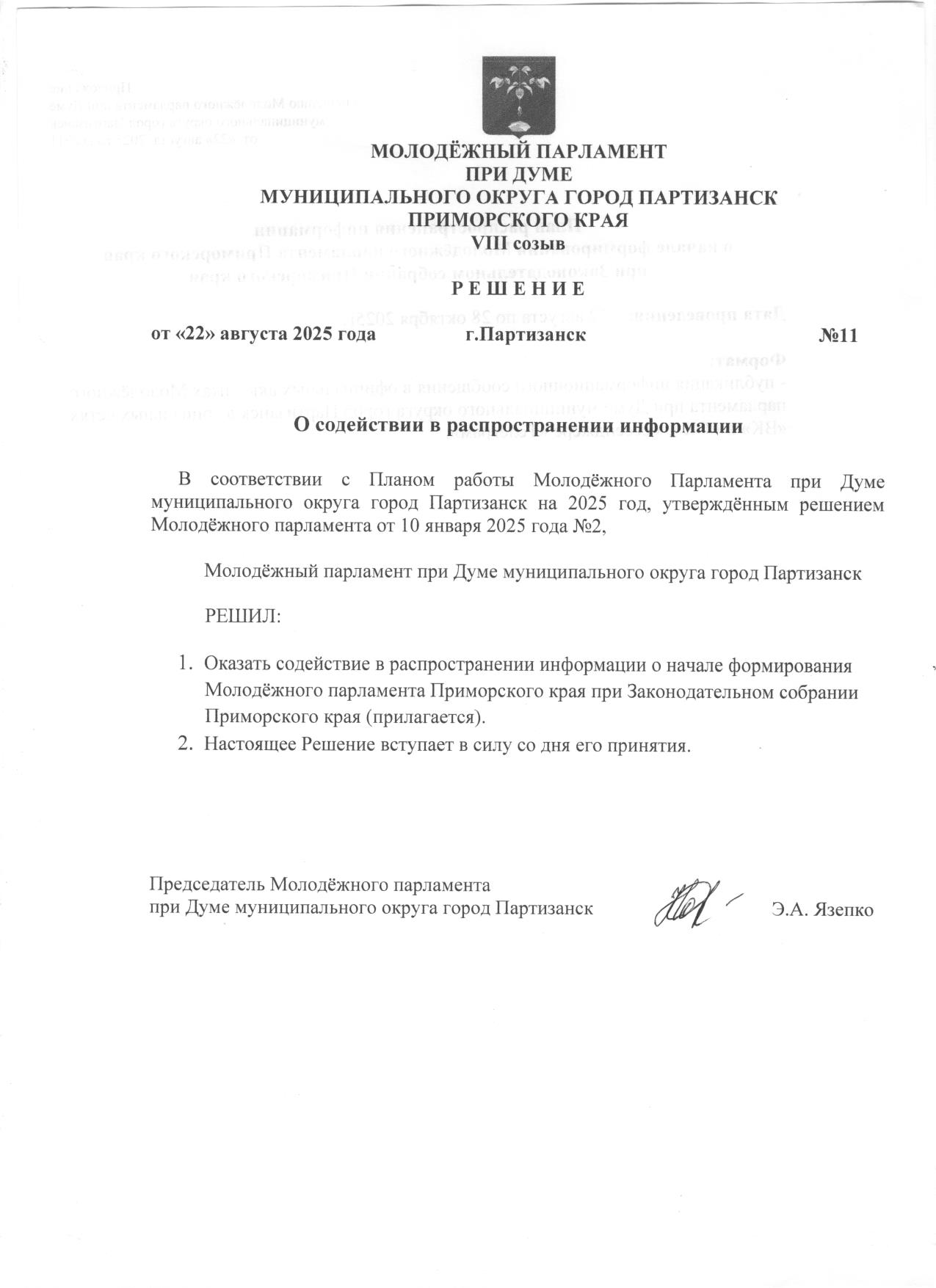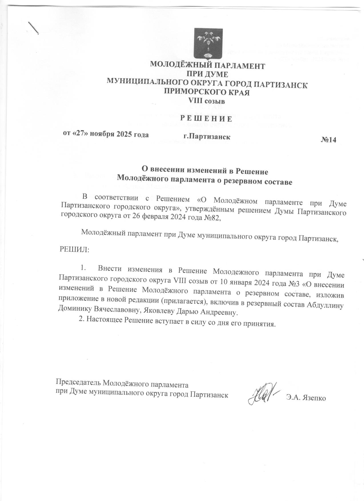 Решение о Молодёжном парламенте